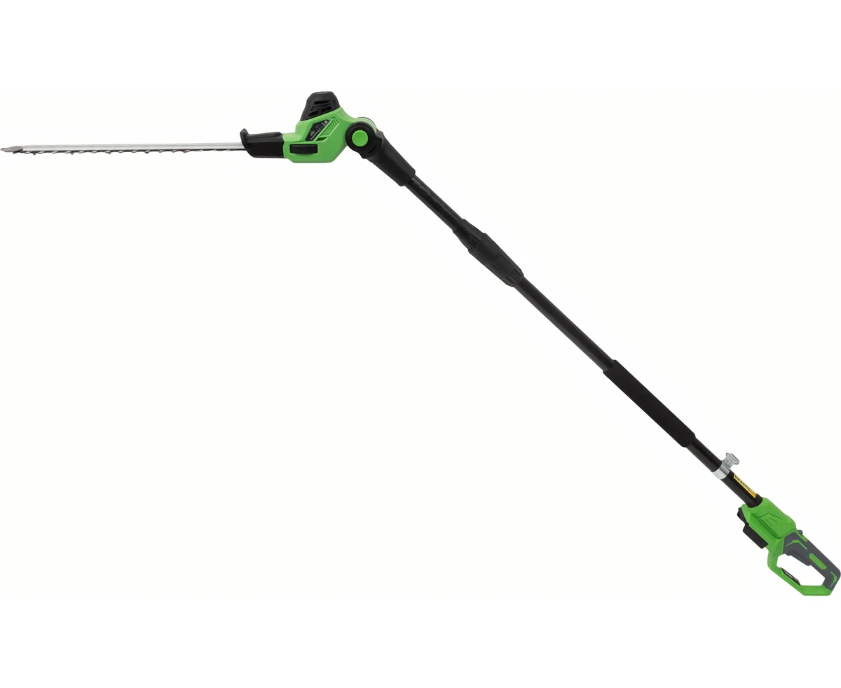 Длина шины составляет 20 см, что позволяет легко справляться с ветками диаметром до 190 мм. Высоторез работает на литий-ионном аккумуляторе с напряжением 20 В, что обеспечивает высокую производительность и длительное время работы.