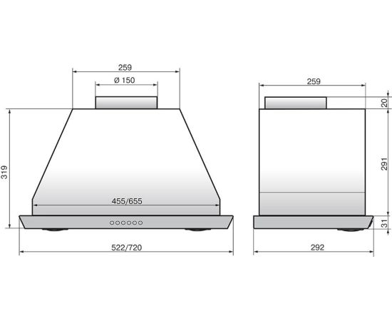 Размеры: 720x319x292мм
