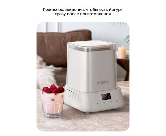 После приготовления вы можете включить прибор в режиме охлаждения: вам не придется ставить йогурт в холодильник, и вы сможете его съесть сразу, достав из йогутницы КТ-9836.