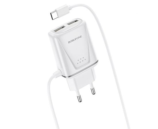 Сетевое зарядное устройство BOROFONE BA50A Beneficence 2xUSB с Кабелем Type-C, 2.1A, белый