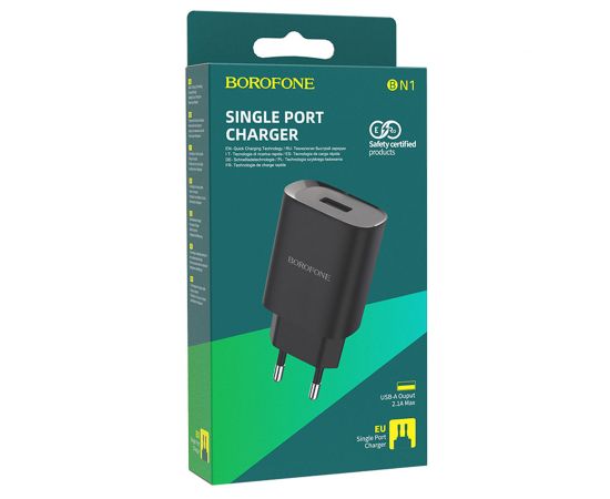 Сетевое зарядное устройство BOROFONE BN1 Innovative 1xUSB, 2.1A, черный