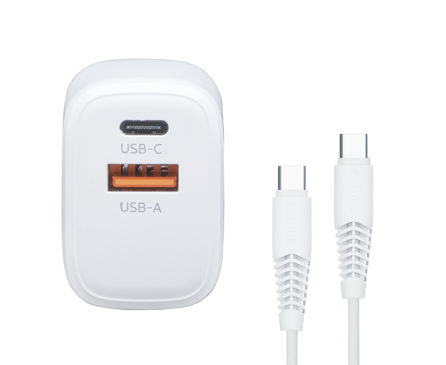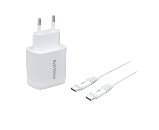 Зарядное устройство для телефона Philips DLP2560DW/97 Travel, USB-C и USB-A, 25W, кабель Type-C Type-C, быстрая зарядка QC3.0, белый