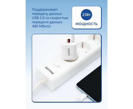 Представляем вам мощное и универсальное сетевое зарядное устройство - Зарядное устройство для телефона Philips DLP2560DW/97 Travel. Этот превосходный адаптер позволяет быстро заряжать различные устройства, включая телефоны, планшеты и другие гаджеты с портом USB - C (Type C). Также он оснащен портом USB-A. С его помощью вы сможете всегда быть на связи и не беспокоиться о разрядке вашего устройства в самый неподходящий момент.