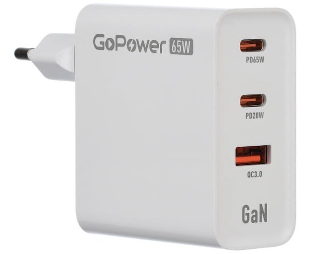 Зарядное устройство GOPOWER 00-00028405 1USB+2TYPE-C 65W QC3.0 GAN White