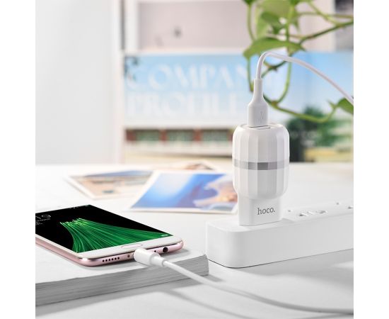 Сетевое зарядное устройство HOCO C41A Wisdom 2xUSB с Кабелем USB - Micro, 2.4A, 10.8W, белый