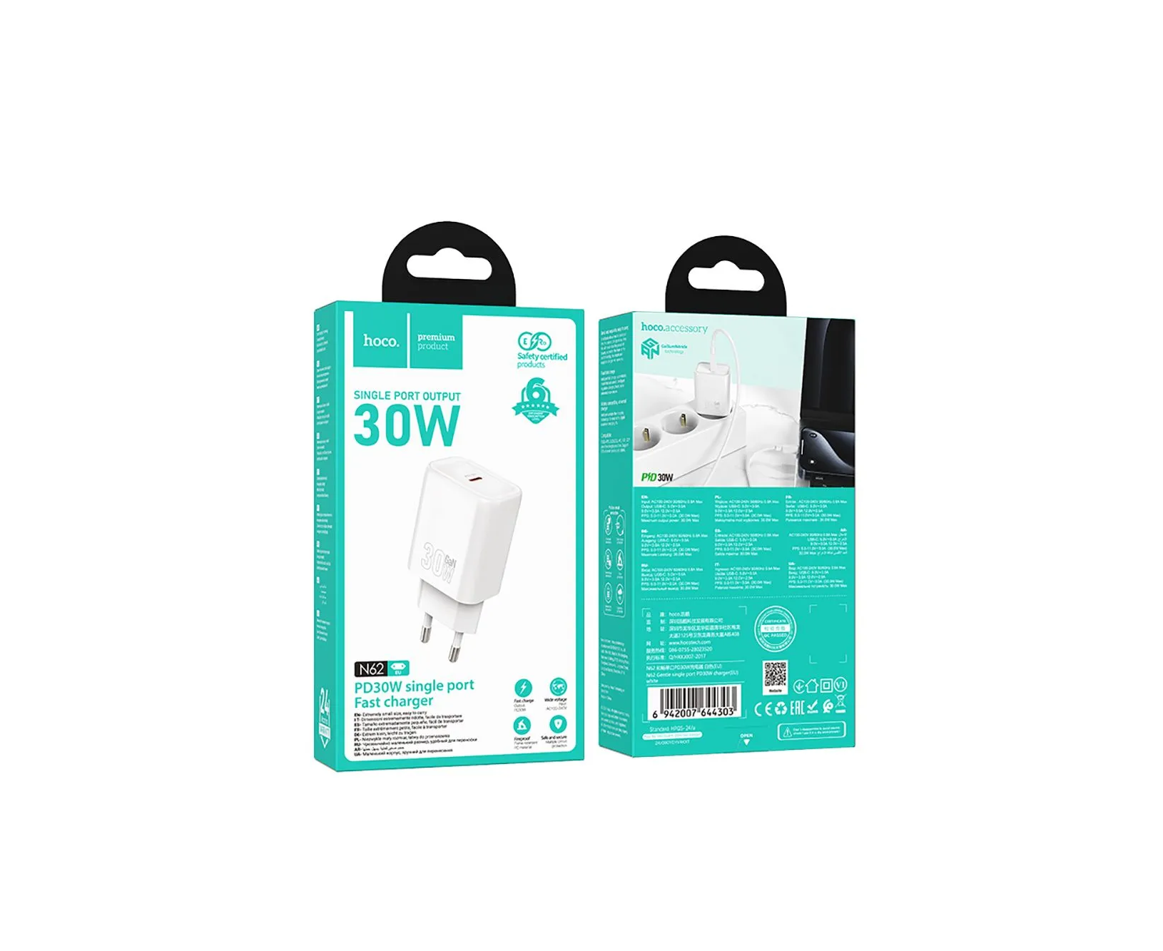 СЗУ HOCO N62 Gentle single port PD30W charger set (Type-С to Type-С) белый