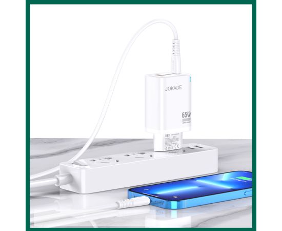 Зарядное устройство JOKADE JB101 GAN 65W 1 USB 2 USB-C white