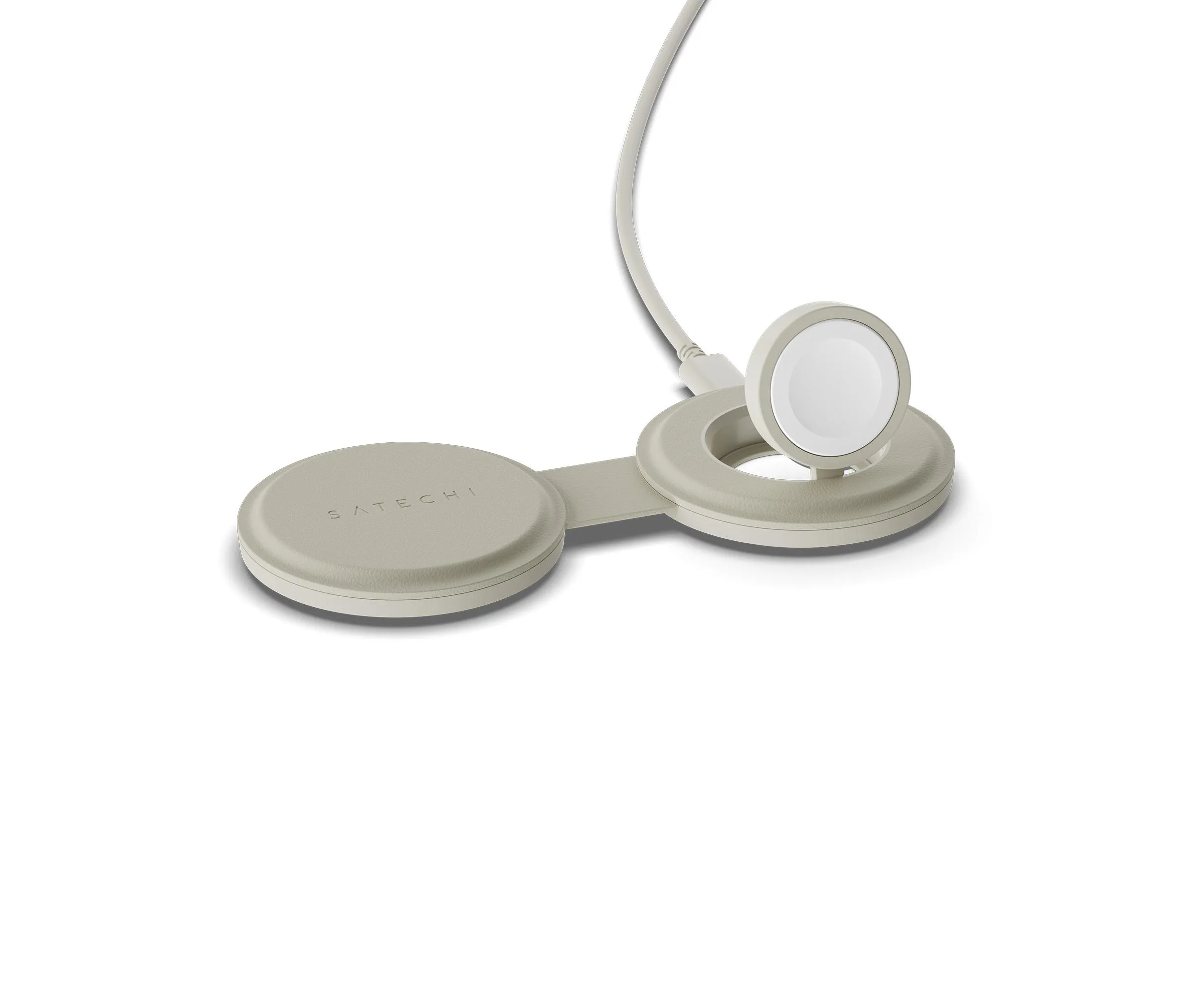 Переносное зарядное устройство Satechi ST-QTG21W Qi2 OntheGo 2-in-1 Wireless Charger песочный