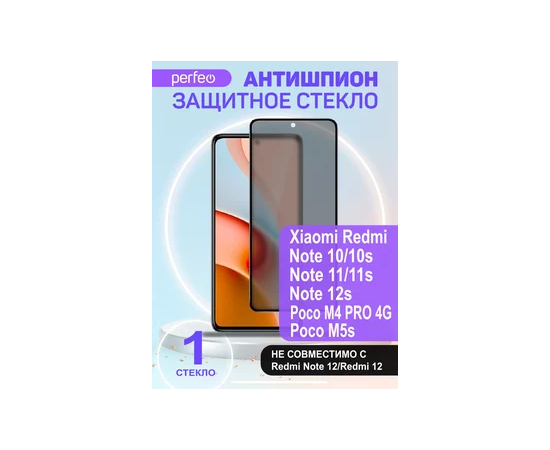Защитное стекло "Антишпион" тех пак Xiaomi Redmi note 10/10S Full Screen