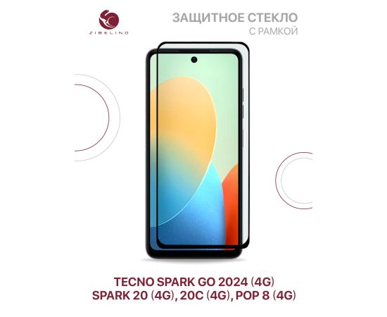 Защитное стекло для Tecno Spark Go 2024 (4G), Spark 20 (4G), Spark 20C (4G), Tecno Pop 8 (4G) с рамкой (Текно Спарк Го 2024, Текно Спарк 20 20С, Техно Поп 8)
