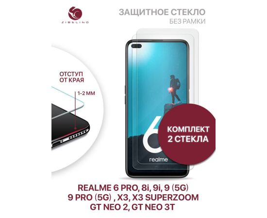 Защитное стекло (Комплект 2 шт) для Realme 8i 9i, 9 (5G), 9 Pro (5G), 6 Pro, X3, X3 SuperZoom, GT Neo 2, GT Neo 3T без рамки с отступом от краев (Реал