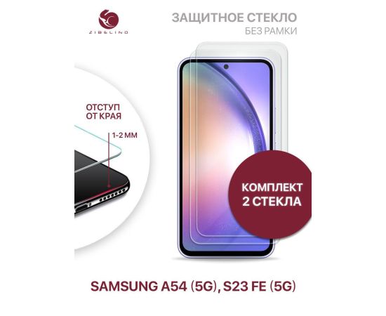 Защитное стекло (Комплект 2 шт) для Samsung A54 (5G), Samsung S23 FE (5G) без рамки, с отступом от краев (Самсунг Галакси А54 Самсунг S23 FE)