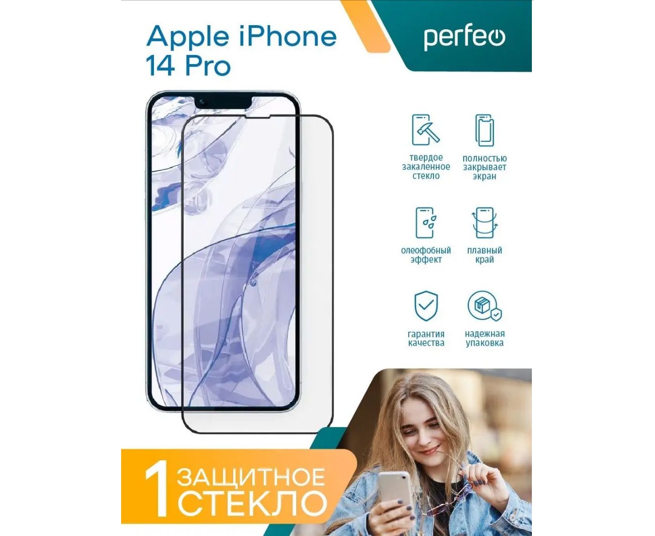 Защитное стекло Perfeo Apple iPhone 14 Pro Max Full Screen
