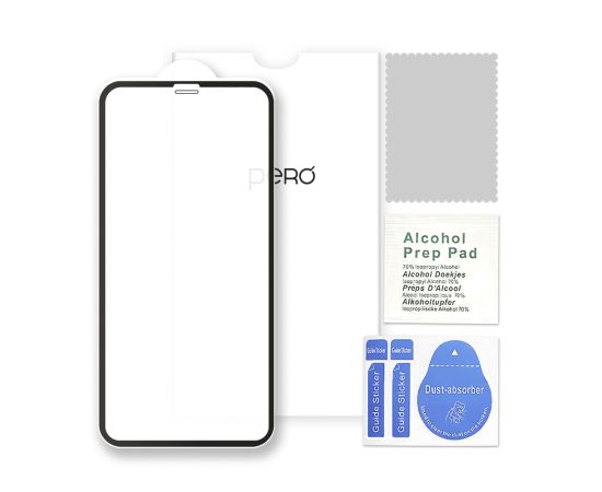 Защитное стекло PERO FULL COVER & FULL GLUE GLASS имеет прокрашенную тонкую рамку по периметру. Комплектация: защитное стекло, влажная и сухая салфетка, стикеры для удаления пыли.