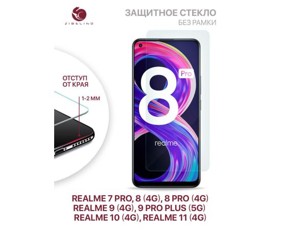 Защитное стекло для Realme 11 4G, 10 4G, 9 4G, 9 Pro+ 5G, 8 4G, 8 Pro 4G, 7 Pro 4G (6.4") без рамки, с отступом от краев (Реалми 7 Про 8 Про 9 Про Плю